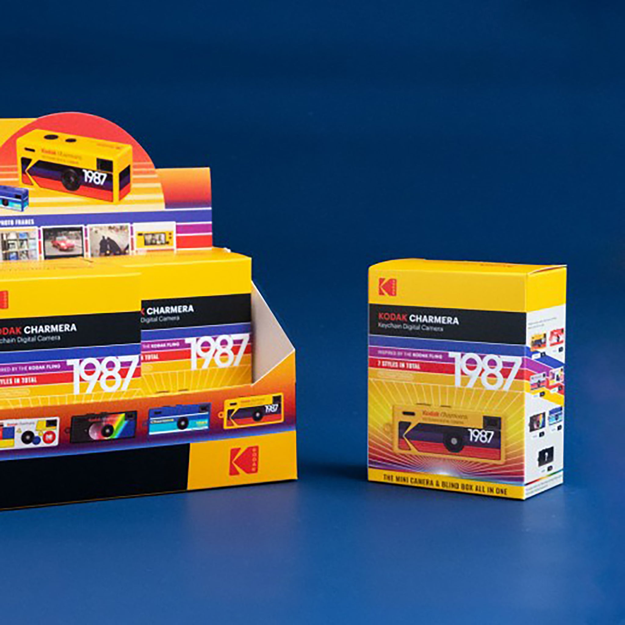 The KODAK Charmera is a mini digital camera and collectible keychain inspired by the retro KODAK Fling - single-use camera - in 1987. Each one comes in a blind box, featuring 7 vintage‑style designs, including 1 rare secret edition—you won’t know which you get until you open it!